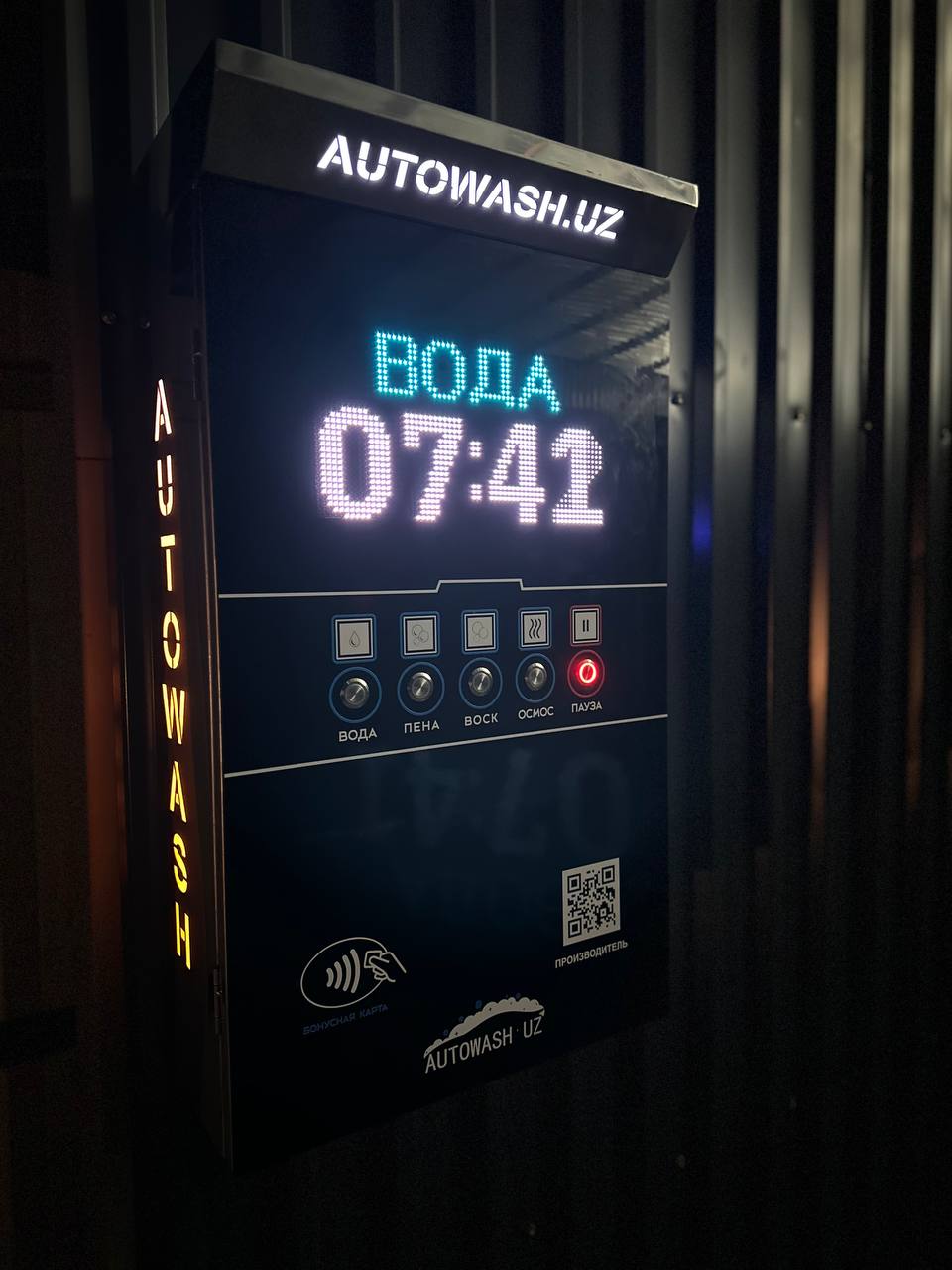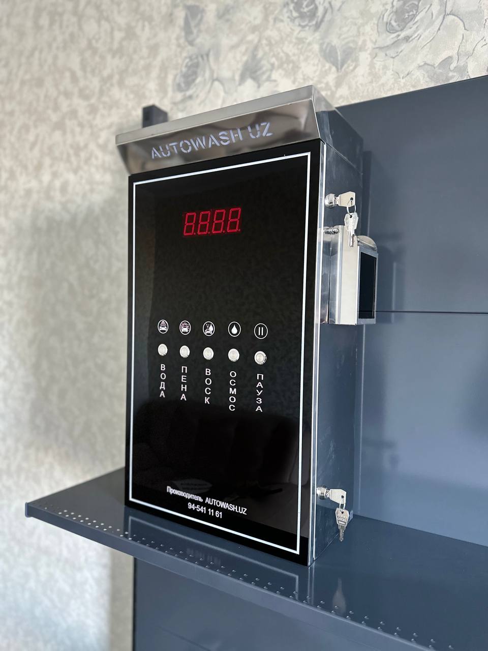 Mashina yuvish shahobchalarini avtomatlashtirib beramiz. Zanglamaydigan po'latdan yasalgan terminal, token qabul qiluvchi, LED displey, OWEN boshqaruvchisi, dasturiy modul, piezo tugmalari.