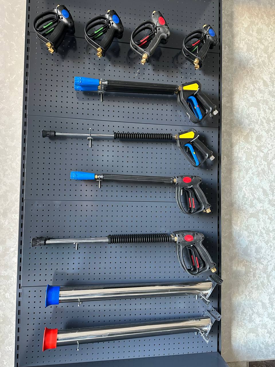 zanglamaydigan po'latdan yasalgan pultlar, to'pponcha ushlagichlari, gilamchalar, R+M to'pponchalari (Germaniya), shlanglar va aksessuarlar (Germaniya).